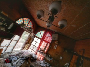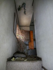 窓から植物。建物は年々自然に飲み込まれつつある。