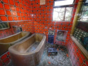 どぎつい赤と金の浴槽。