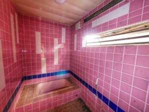 ドピンクの浴室。